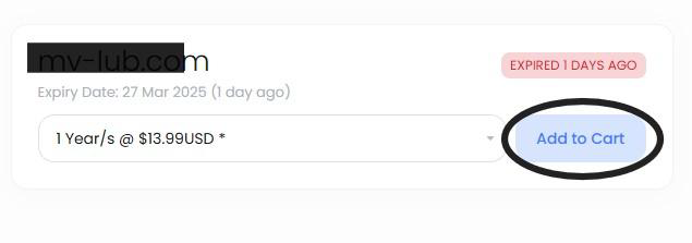 - Click on the Add to Cart option, and the renewal rate will be displayed in the right-hand column.